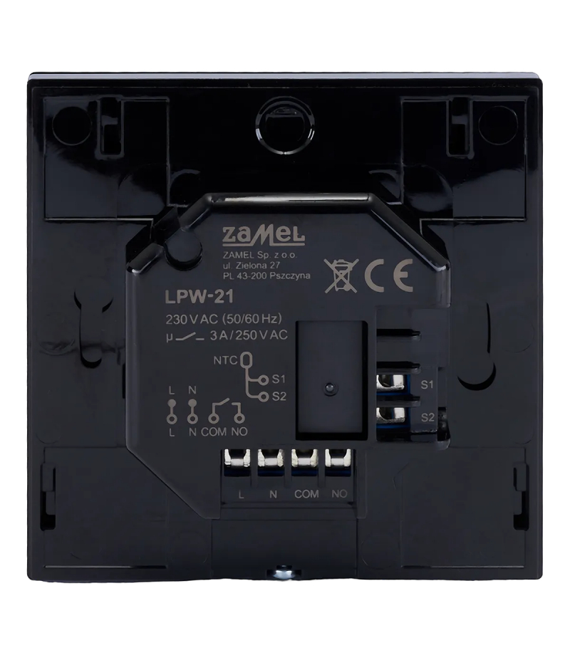 Regulator zasilany napięciem 230 V~ przeznaczony do montażu podtynkowego w puszkach Ø60. Zadaniem regulatora jest utrzymywanie komfortu cieplnego w pomieszczeniu