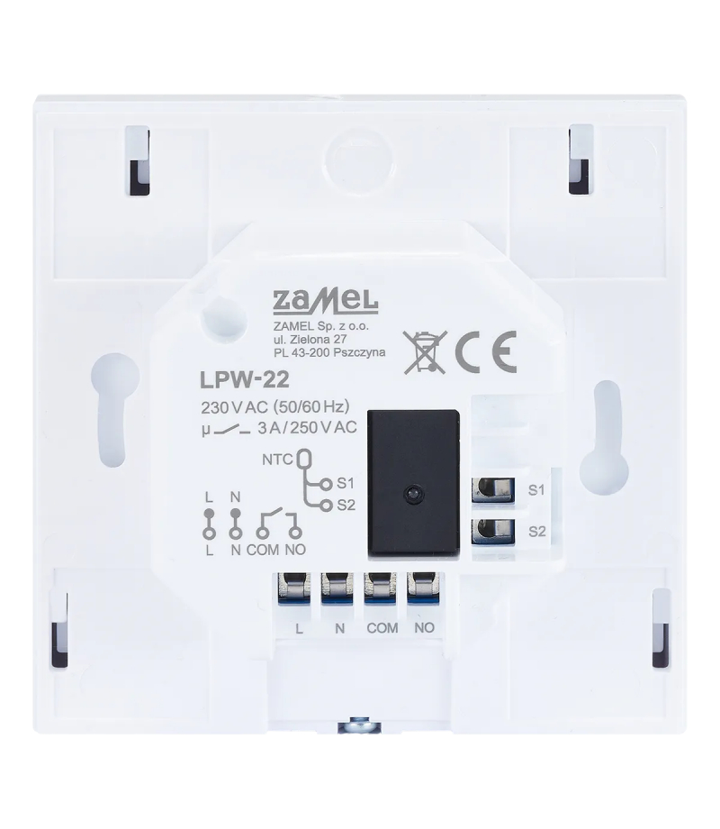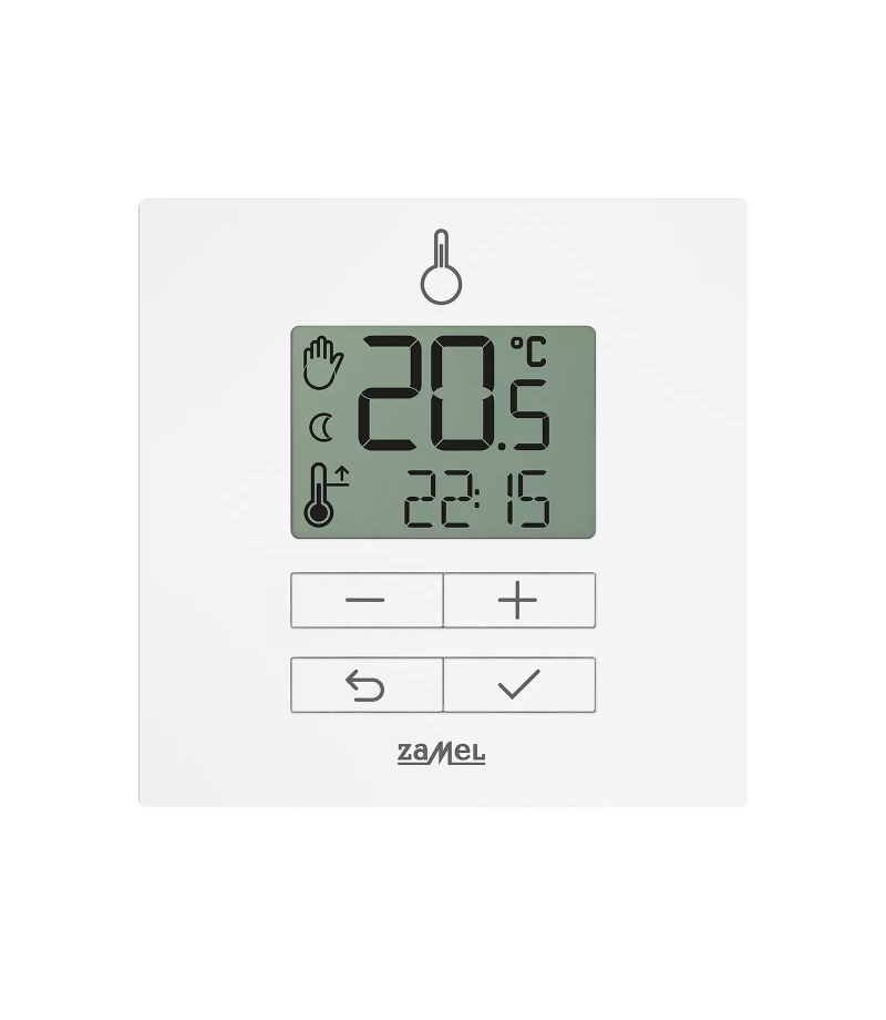 Regulator zasilany napięciem 230 V~ przeznaczony do montażu podtynkowego w puszkach Ø60. Zadaniem regulatora jest utrzymywanie komfortu cieplnego w pomieszczeniu