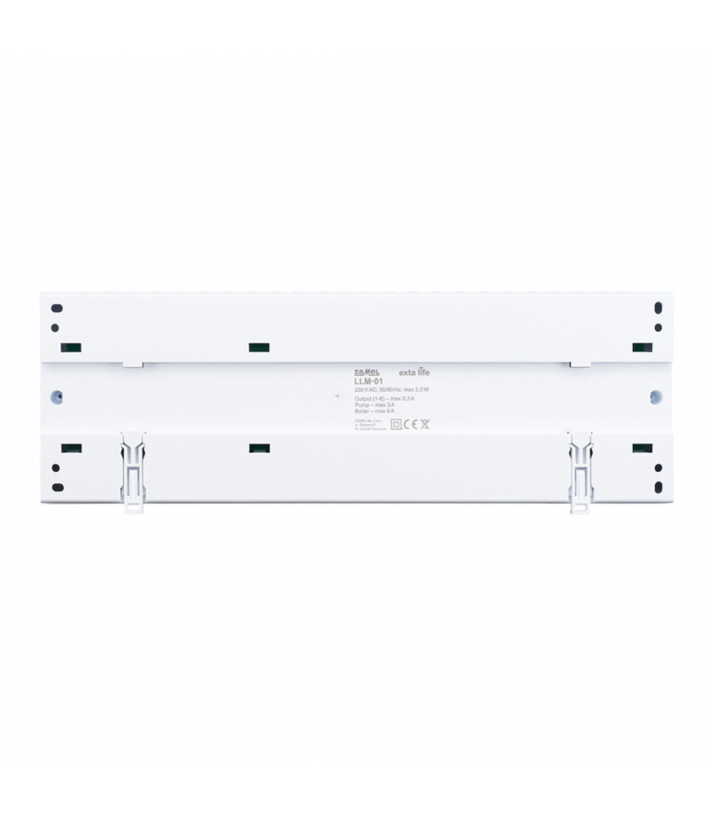 1. LISTWA PRZEWODOWA LLM-01 Poza regulacją temperatury w pomieszczeniach umożliwia także sterowanie pompą obiegową oraz urządzeniem grzewczym. Regulacja temperatury jest realizowana na zasadzie otwierania lub zamykania przepływu czynnika grzewczego przez pętle z wykorzystaniem siłowników termoelektrycznych zamontowanych na rozdzielaczu. Do jednej strefy można podłączyć do 6 siłowników. Listwa przeznaczona jest do montażu bezpośredniego w skrzynkach rozdzielaczy z wykorzystaniem szyny TH35 lub natynkowego. Specjalnie przygotowane otwory umożliwiają montaż z wykorzystaniem opasek kablowych. Precyzyjne Sterowanie Temperaturą Jedną z najważniejszych cech listwy LLM-01 jest możliwość precyzyjnego sterowania temperaturą. Urządzenie współpracuje z termostatami i innymi elementami systemu grzewczego, umożliwiając dokładne utrzymanie pożądanej temperatury w pomieszczeniach. Precyzyjne sterowanie temperaturą przekłada się na wyższy komfort użytkowania oraz efektywność energetyczną, co jest szczególnie istotne w dobie rosnących kosztów energii. Listwa do sterowania ogrzewaniem podłogowym LLM-01 jest kompatybilna z przewodowymi termoregulatorami, co czyni ją odpowiednim rozwiązaniem również dla instalacji wodnego ogrzewania podłogowego. Strefowa kontrola i oszczędność energii cieplnej Listwa LLM-01 steruje zaworami na pętlach grzewczych realizując funkcje grzania wedle parametrów zadanych przez użytkownika za pośrednictwem termoregulatorów w kolejnych pomieszczeniach. Umożliwia to precyzyjną dystrybucję ciepła do pomieszczeń, gdzie jest ono w danym momencie najbardziej potrzebne. Selektywne wyłączanie poszczególnych obiegów sprzyja oszczędności i efektywnemu wykorzystaniu energii w domowej instalacji wodnego ogrzewania podłogowego. Zastosowanie w instalacji inteligentnego domu Zastowanie przewodowej listwy LLM-01, siłowników termoelektrycznych SOP-01/SOP-02 oraz termoregulatorów GKW-01/GKW-02 pozwala stworzyć kompletny zestaw do zarządzania ogrzewaniem domowym. Użytkownik otrzymuje możliwość precyzyjnej regulacji temperatury w poszczególnych pomieszczeniach i tworzenia harmonogramów automatyzujących codzienne działanie systemu grzewczego. Jednocześnie taka instalacja daje możliwość zdalnej kontroli za pośrednictwem aplikacji mobilnej Supla. Ustawienie temperatury odbywać się może również za pośrednictwem panelu dotykowego termoregulatora GKW-01 ułatwiając sterowanie również użytkownikom bez smartfona.